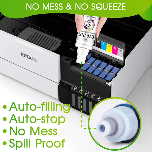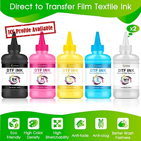 CenDale DTF Ink Premium Heat Transfer Ink for Epson ET-8550, L1800, L800, R2400, P400, P800, XP15000 - Printing Direct to Film (250ml x 6, CMYK Wh)