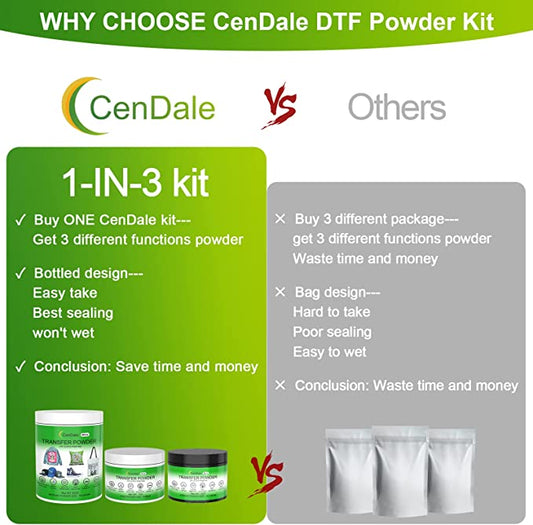 CenDale DTF Powder Kit - Fine Medium White Black Digital DTF Transfer Powder Hot Melt Adhesive Powder