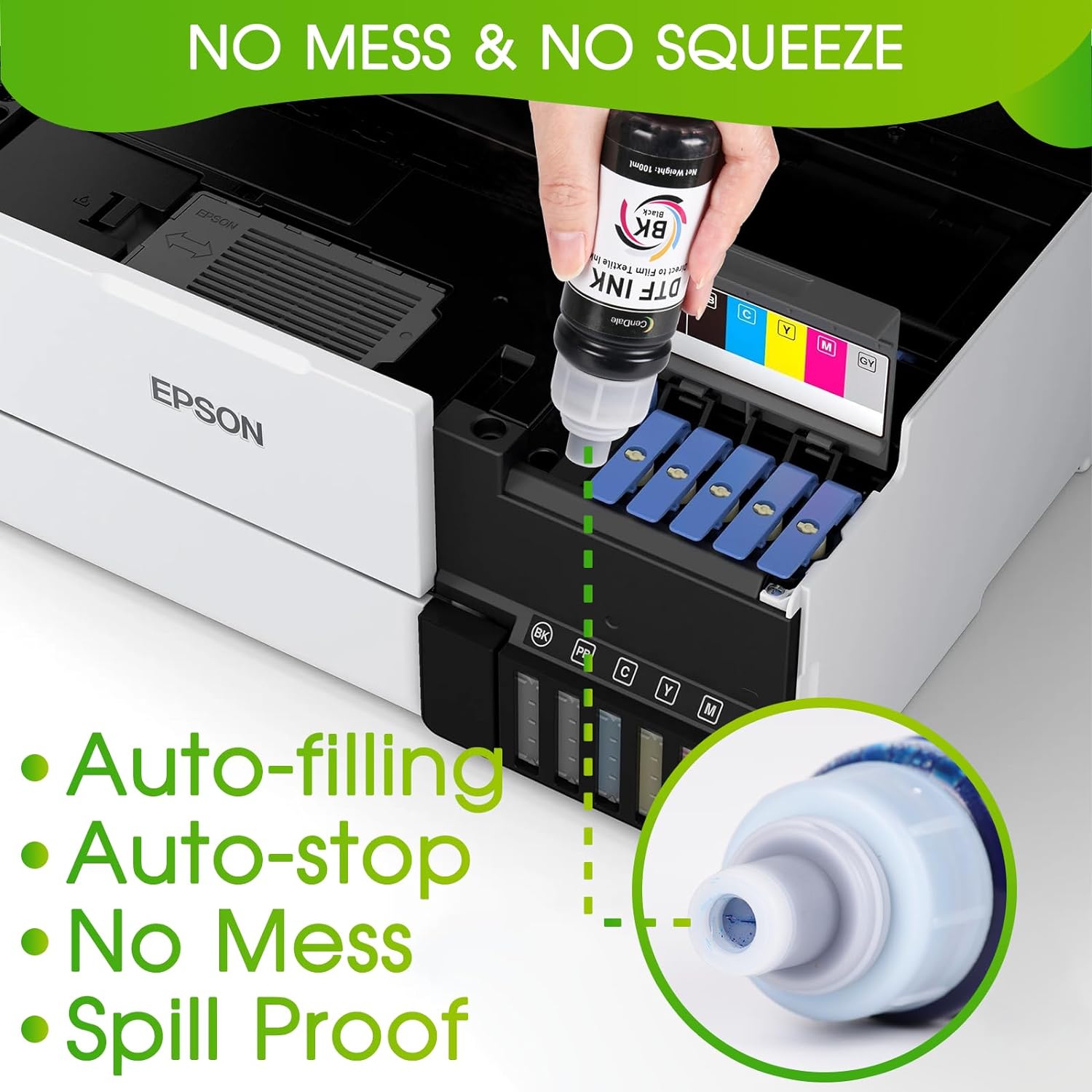 - ✅ 【COMPATIBILITY】Unlock the world of DTF printing with our ink. For DTF printers and all 6 and 8 color Epson printers that can be converted to DTF with cadlink software. For Epson ET-8550, ET8500, XP15000, L1800, L800, 1430, P400/P408, P600/P608, P800, R1390, R1800, R1900, R2000, R2400, R2880, R3000, 3880, 4880, 7880 printer etc. Perfectly complemented by CenDale DTF transfer film and DTF powder. Elevate your creative projects and business printing with ease.