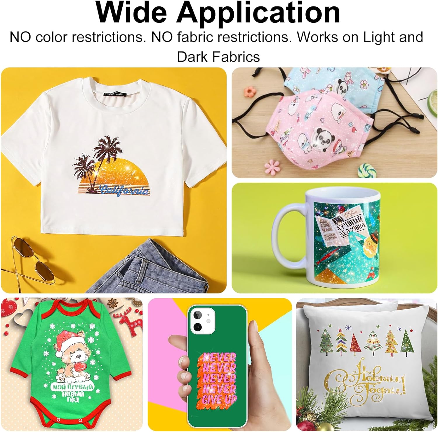 - ✨【WIDE COMPATIBILITY】Direct Transfer Printing is a revolution new technique that’s more affordable and accessible. NO color restrictions, NO fabric restrictions. Experience the freedom of printing on a wide range of fabrics. Our DTF transfer film works seamlessly on both light and dark textiles, including cotton, polyester, synthetic, and blended materials. Note: When using DTF sublimaiton hack, only white fabrics are compatible due to the lack of white ink.
