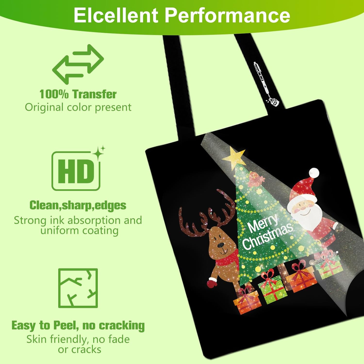 - ✨ 【EASY TO US】Skip the PreTreat step - simply create, print, and easily cut to your desired size without the need for weeding. Our film allows you to print on untreated cotton, denim, silk, polyester, nylon, jeans, leather, blends, Lycra, and various other materials with ease. The side adorned with colored glitter serves as the printing surface, with image mirroring required for printing. Enjoy simplicity in every step of the process.