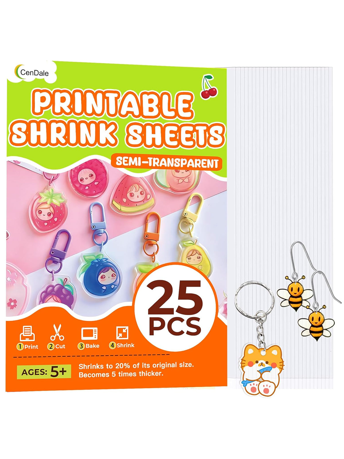 - ✅ 【PERFECT SIZE & QUANTITY】 This shrink plastic set includes 25 A4-sized sheets (8.3 x 11.7 inches) of semi-transparent printable film, each with a thickness of 0.3mm. After heating, the sheets shrink to 20% of their original size and become 5 times thicker. Each sheet has a smooth side and a matte frosted side—use the frosted side for printing to achieve clear, vibrant designs that pop. Perfect for all your DIY crafting needs!